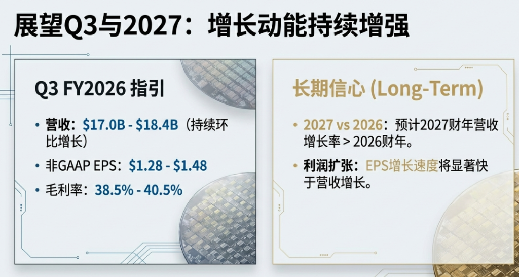 鉴于客户需求的非凡强度和可见性,结合我们持续快速扩张的产能,我们预计在未来几个季度将出现持续强劲的收入增长期。特别是,我们预计3月和6月季度都将实现持续强劲的环比收入增长,并且我们预计2027财年的收入增长率将超过2026财年的增长率。
