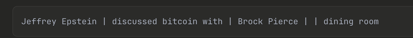 我们的数据库只处理了众议院监督委员会的文件,能拼出来的 Pierce 线索到这里就断了。但就在这篇文章写作期间,美国司法部放出了另一批超过 300 万页的爱泼斯坦文件,Decrypt 根据这批新文件做了报道,揭示出两人的关系比数据库里显示的要深得多。