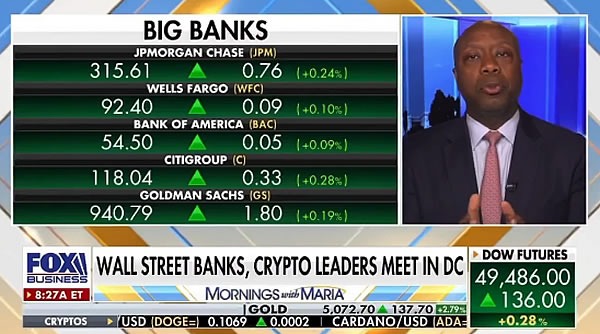 美国参议院银行委员会主席Tim Scott周三在接受FOX News采访时表示,允许加密公司提供奖励是件好事,但不得以银行身份进行宣传。