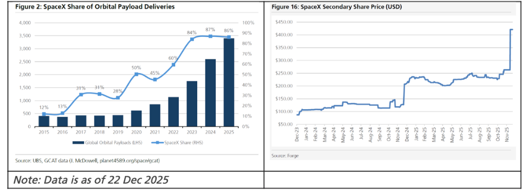 根据瑞银提供的数据,SpaceX目前的财务状况极其健康,主要得益于星链约900万用户的支持及其在全球发射市场的绝对主导地位。预计2025年SpaceX的营收将达到150亿至160亿美元,并产生约80亿美元的EBITDA(息税折旧摊销前利润)。这原本是一个完美的、利润丰厚的IPO故事。