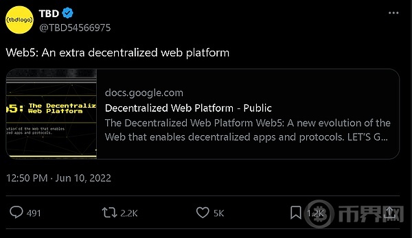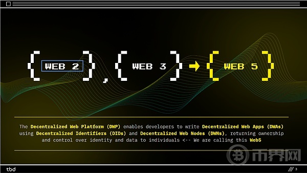 “在当今的网络上,身份和个人数据已成为第三方财产。Web5 将为你的应用程序带来去中心化身份和数据存储。它让开发者专注于打造卓越的用户体验,同时将数据和身份的所有权归还给个人。” TBD 官网如此写道。
