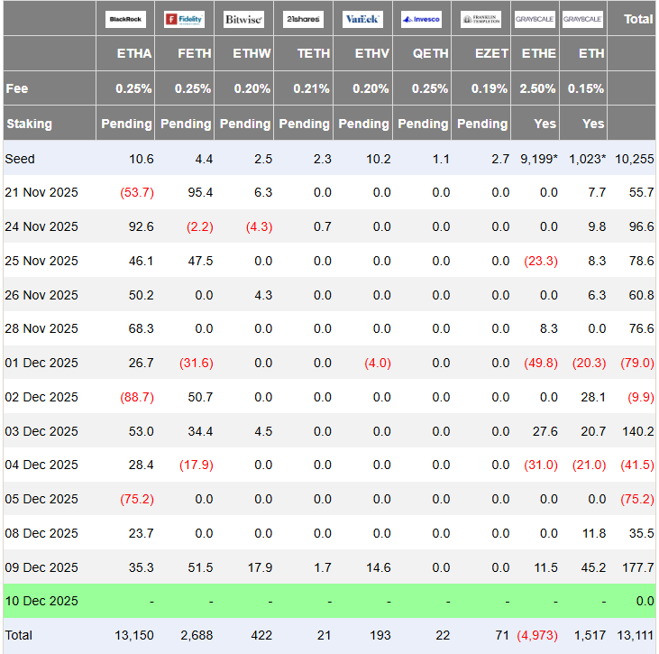 ETH/BTC价格的突破无疑提振了ETH投资者的信心。以太坊 ETF周二录得 1.777 亿美元的资金流入,这是自 10 月 20 日以来最高的单日资金流入量。