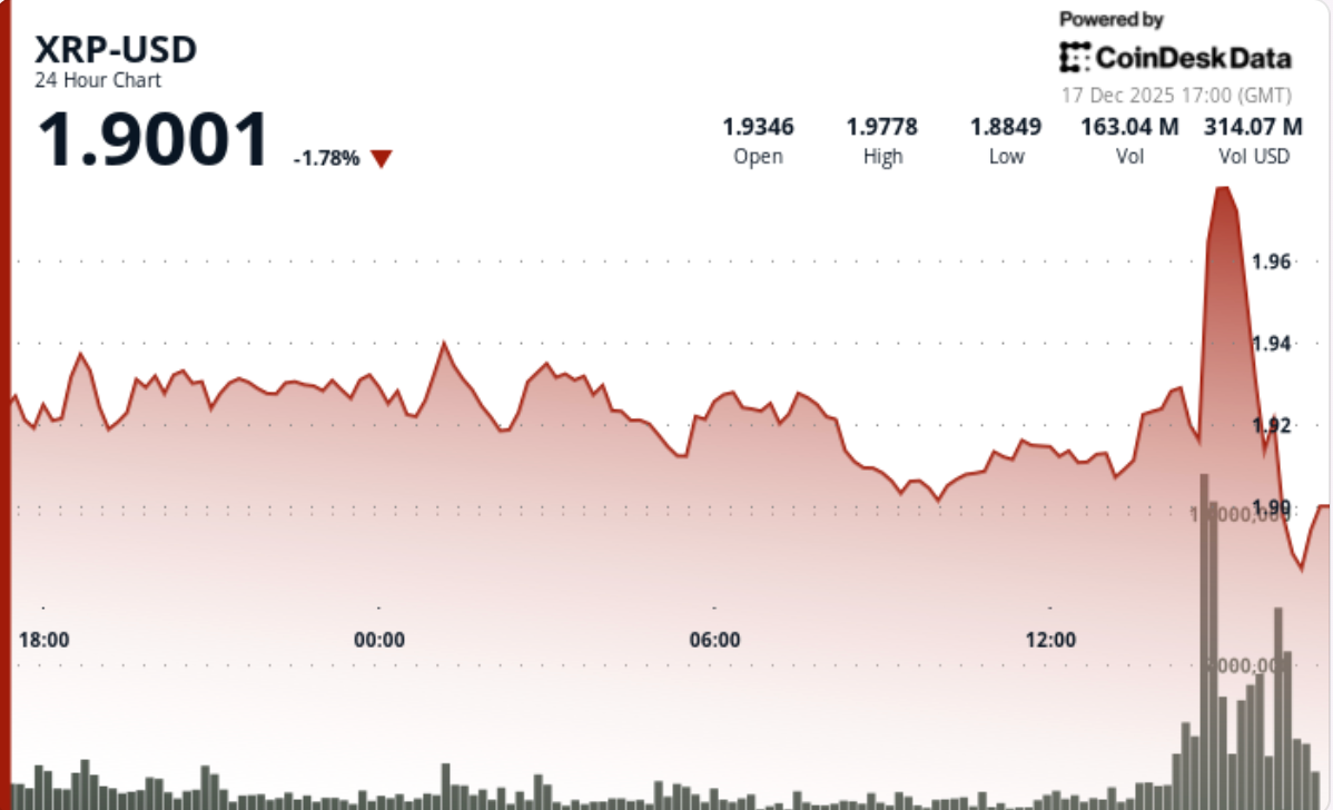 周三,XRP 大幅下跌,跌破 1.92 美元的支撑区域,原因是美国交易时段内,抛售压力加剧,同时跨资产市场剧烈波动。