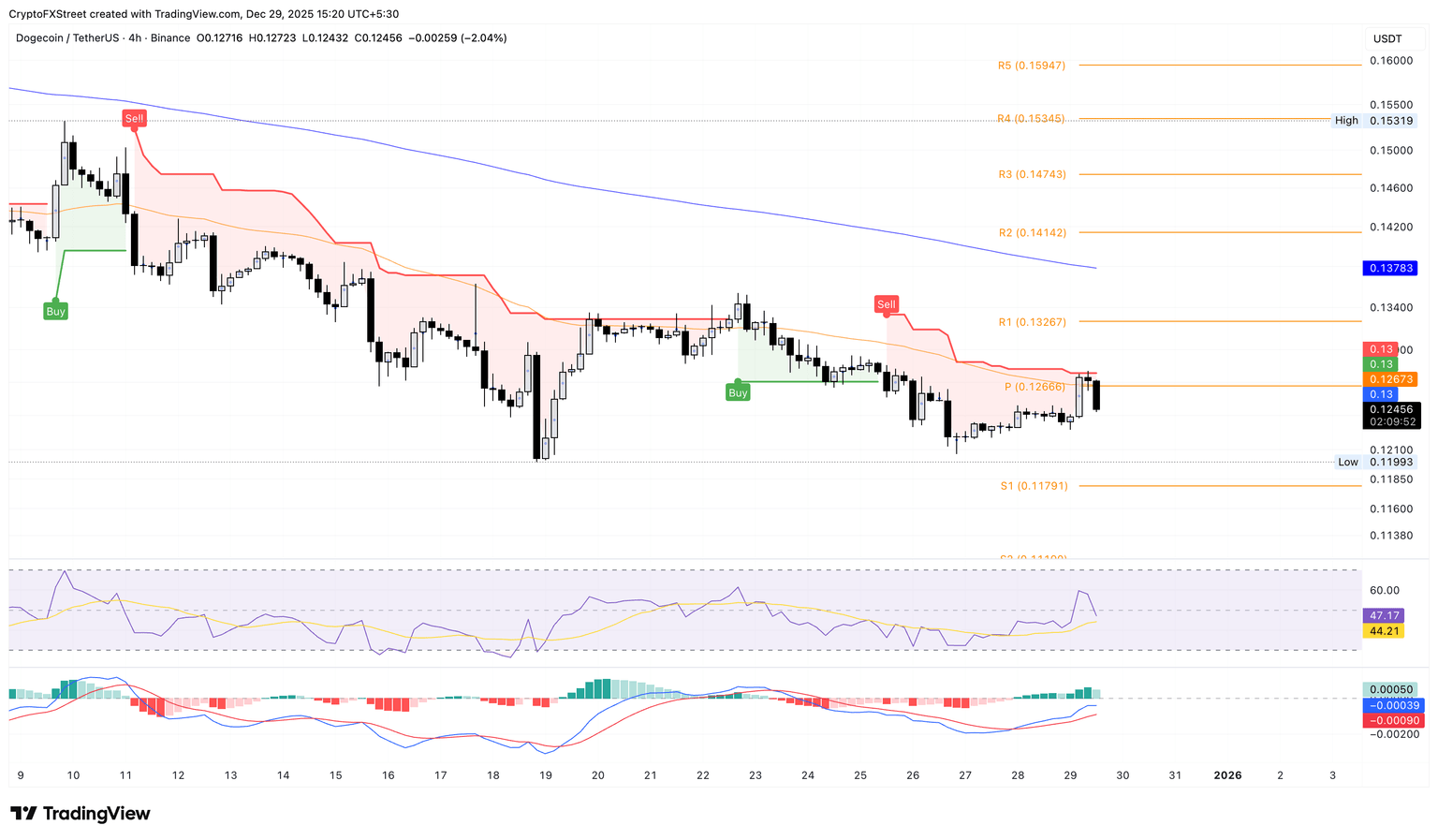 如果狗狗币 (DOGE) 成功收复 0.1300 美元,超级趋势指标将发出买入信号。在这种情况下,0.1326 美元的 R1 枢轴点可能成为此次潜在反弹的直接阻力位。