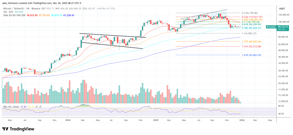 截至发稿时,比特币交易价格为 88,102 美元。