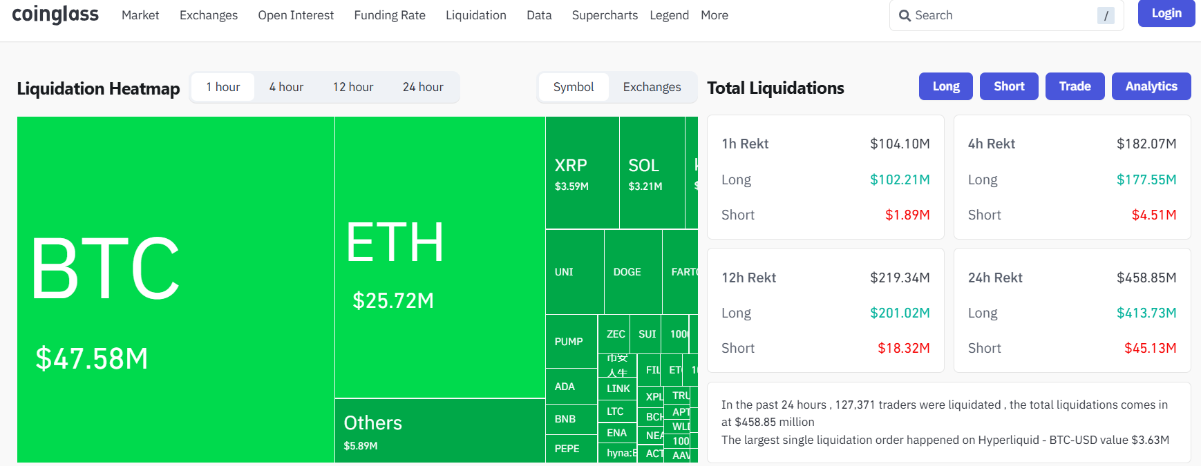 - 比特币价格跌破 9 万美元,导致大量比特币在一小时内被清算,金额超过 1 亿美元。