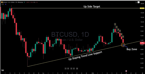 比特币/美元已从近期高点回落近7000美元,但真正的问题不在于跌幅,而在于跌势何时止步。在连续六个交易日遭受抛售压力后,全球最大的加密货币比特币/美元价格终于触底反弹。加密货币目前,价格正在测试一条自11月下旬以来一直支撑此轮上涨的成熟上升趋势线。而这正是技术面开始展现其吸引力的地方。