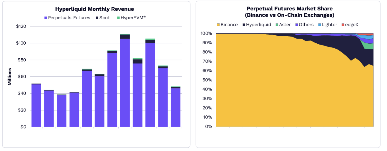 在永续合约市场,由 Hyperliquid 带领的 DeFi 衍生品正从币安手中抢占份额。