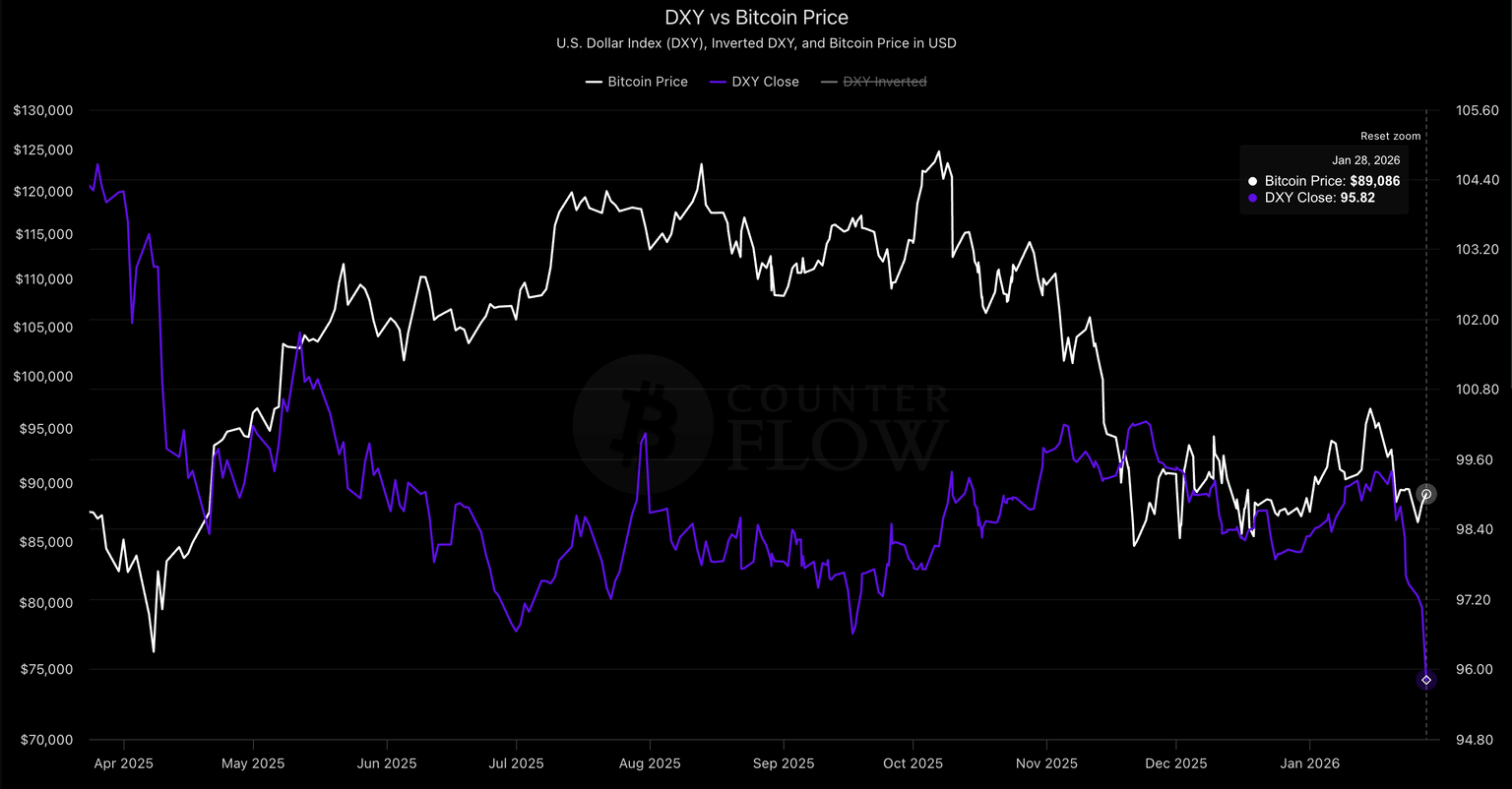 美国总统特朗普对美元走弱持乐观态度,导致美元指数(DXY)周二单日暴跌1.3%。特朗普的言论加剧了市场对美元贬值的猜测,引发美元抛售,并推动黄金(XAU/USD)价格创下历史新高。尽管宏观经济环境有利,比特币(BTC)在取代美元的竞争中仍然落后。