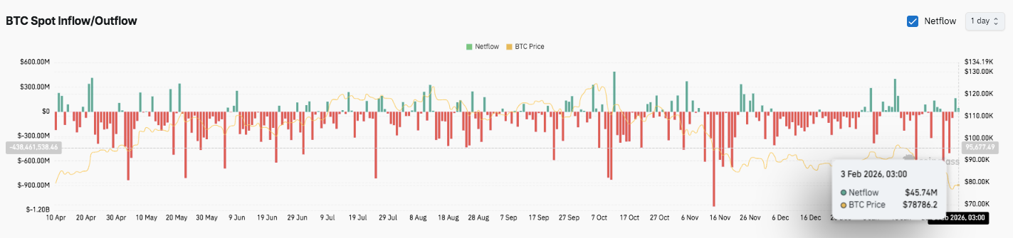 下行方面,78,000 美元构成直接支撑。若跌破该支撑位,75,400 美元至 74,600 美元的需求区仍然至关重要。若跌破 74,500 美元,比特币将面临更大的下行风险。