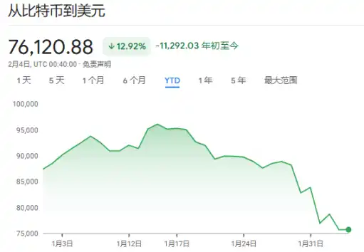 这一警告发出之际,比特币周二继续暴跌,一度跌破 73000 美元,抹去了自 2024 年 11 月特朗普连任以来的所有涨幅。自 10 月初创下历史高点以来,这一数字货币已下跌超过 40%。