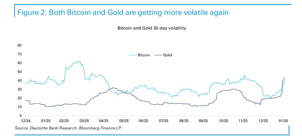 全年表现更加鲜明。2025年黄金录得65%的回报,而比特币下跌6.5%。这表明比特币不再充当"数字黄金"的角色。值得注意的是,尽管黄金近期也显示出类似加密货币的波动性,但支撑黄金需求的基本驱动力依然强劲——央行购买、地缘政治风险以及对避险资产的需求。