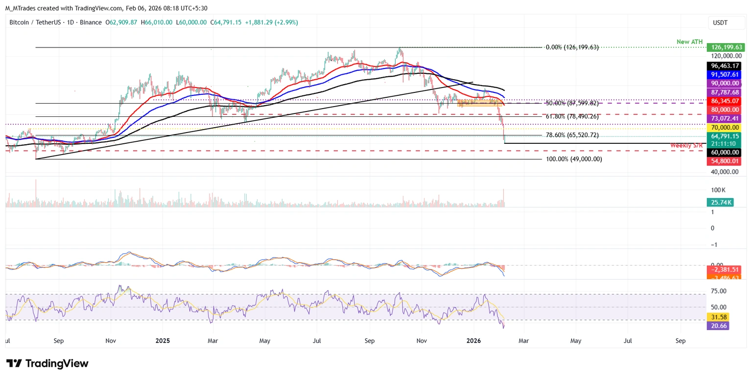如果比特币继续回调,跌势可能会延续到 54,800 美元的周线支撑位附近。