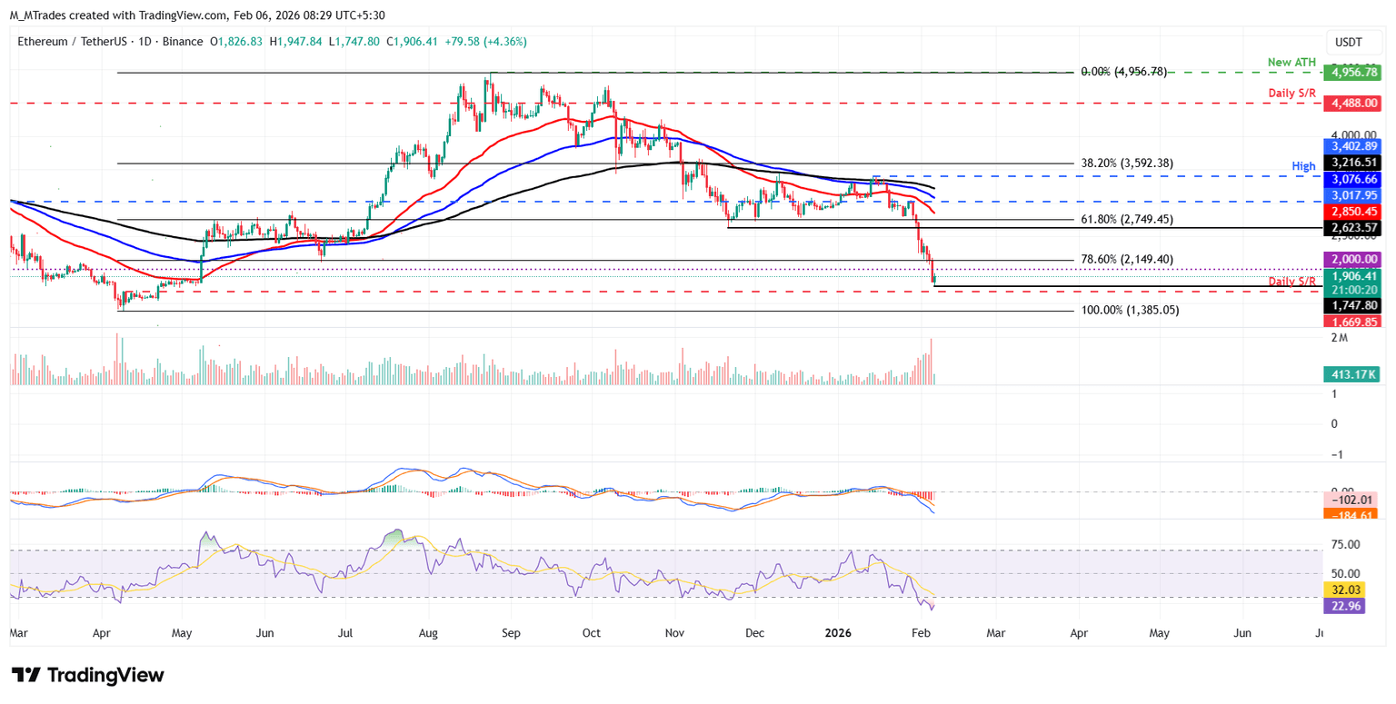 以太坊价格已已更正本周迄今为止已下跌超过 15%,周五跌至 1747 美元的低点,这是自 2025 年 5 月 6 日以来未见的水平。