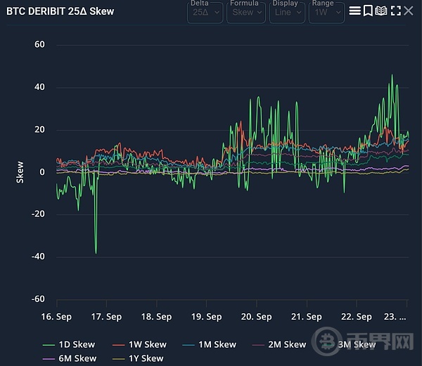 Deribit分析平台与Laevitas的25Delta偏度数据显示,短期看跌期权交易价格高于看涨期权,这种结构既反映下行保护需求,也表明做市商在现货附近维持负Gamma头寸。
