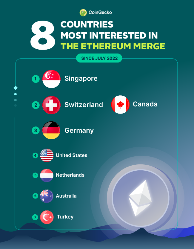自 2022 年 7 月以来,对以太坊合并最感兴趣的 8 个国家: