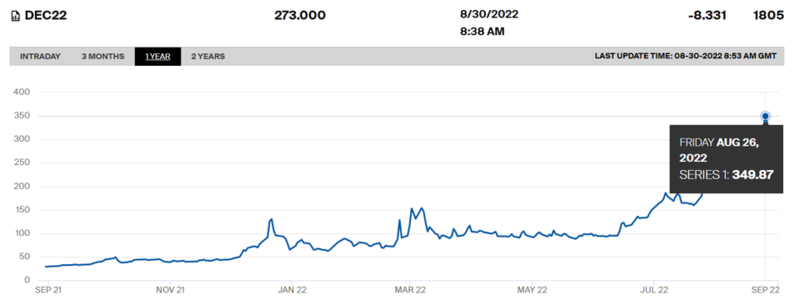 2022 年 12 月荷兰 TTF 天然气期货,来源:ICE-ENDEX